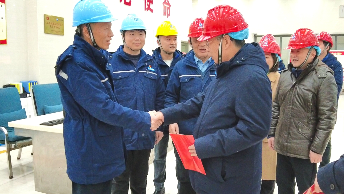 湖北能源董事長、黨委書記何紅心陪同三峽集團董事長、黨組書記劉偉平慰問鄂州發電公司職工(鄂州發電公司供稿)