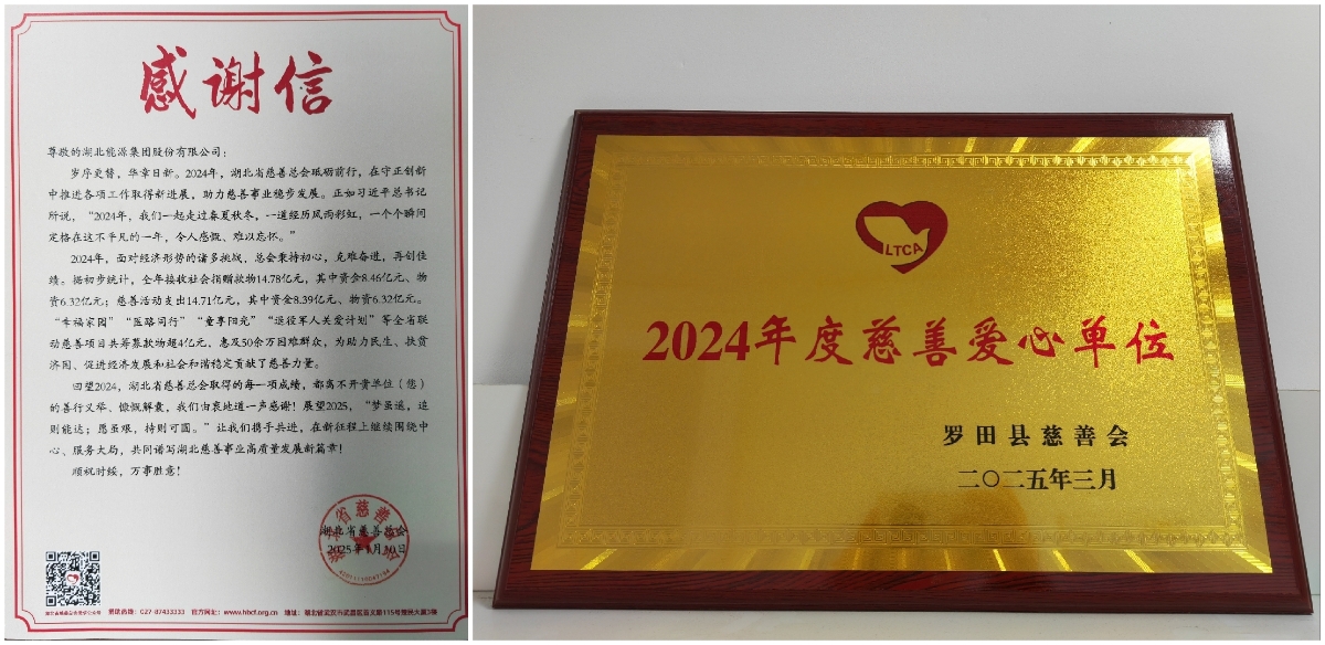 平蓄公司榮獲羅田縣“2024年度慈善愛心單位”稱號